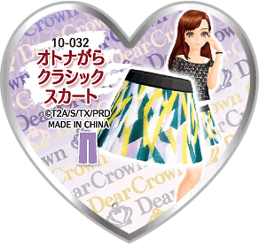 Adult Classic Skirt (オトナがらクラシックスカート) is a cool-type Prism Stone. This stone is a collab from the brand Dear Crown and has not appeared in the anime.
