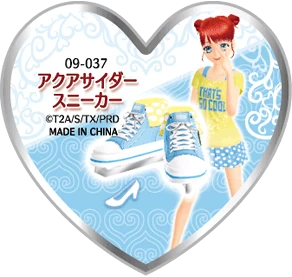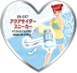 Aqua Cider Sneakers (アクアサイダースニーカー) is a pop-type Prism Stone. It was worn by Karin Shijimi in Pretty Rhythm Dear My Future.