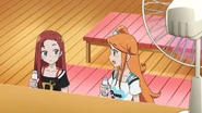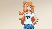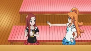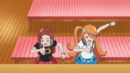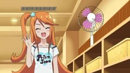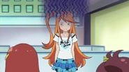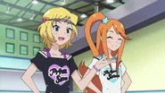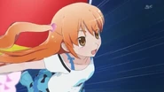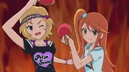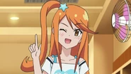 After obtaining a Batopon, Prism Stars receive this Prism Stone set to wear for training. Rizumu was specifically given this version from Kyoko to replace her prior training outfit during the Summer Queen Cup. She is shown to still use it in the following series. In the anime, the logo design on the chest is simplified to just say Prism Stone over a plain heart, which is now lighter in color than the stone version. The skirt print is lessened severely.