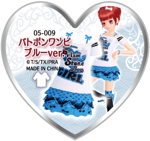 Batopon One Piece Blue ver. (バトポンワンピブルーver.) is a star-type Prism Stone. It was worn by Rizumu Amamiya in Pretty Rhythm Aurora Dream and Pretty Rhythm Dear My Future. It resembles the Batopon One Piece Pink ver., Batopon One Piece Black ver., Batopon One Piece Purple ver., Mates One Piece Prizmmy☆ Cool, Mates One Piece Prizmmy☆ Red, Mates One Piece Prizmmy☆ Yellow, Mates One Piece Prizmmy☆ Pink and the Batopon One Piece Serenon ver..