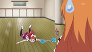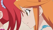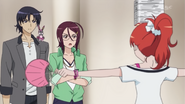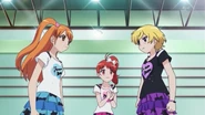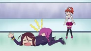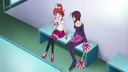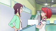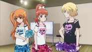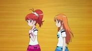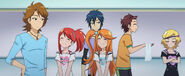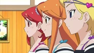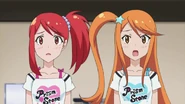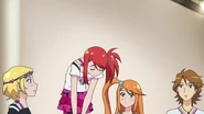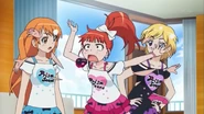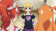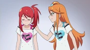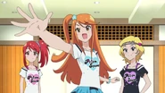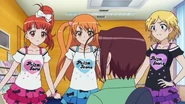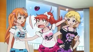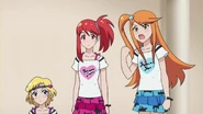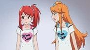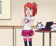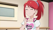 After obtaining a Batopon, Prism Stars receive this Prism Stone set to wear for training. Aira was specifically given this version from Kyoko to replace her prior training outfit during the Summer Queen Cup. She is shown to still use it in the following series. In the anime, the logo design on the chest is simplified to just say Prism Stone over a plain pink heart. The skirt print is lessened severely.