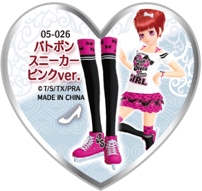 Batopon Sneakers Pink ver. (バトポンワンピピンクver.) is a star-type Prism Stone. It was worn by Aira Harune in Pretty Rhythm Aurora Dream and Pretty Rhythm Dear My Future. It resembles the Batopon Sneakers Blue ver., Batopon Sneakers Purple ver., Mates Sneakers Prizmmy☆ Cool, Mates Sneakers Prizmmy☆ Red, Mates Sneakers Prizmmy☆ Yellow, Mates Sneakers Prizmmy☆ Pink and the Batopon Sneakers Serenon ver..