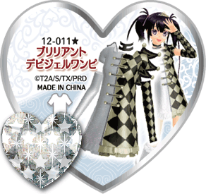 Brilliant Devigel One Piece (ブリリアントデビジェルワンピ) is a star-type Prism Stone. It was worn by Kaname Amamiya in Pretty Rhythm Dear My Future. It resembles the Devigel Mix One Piece.