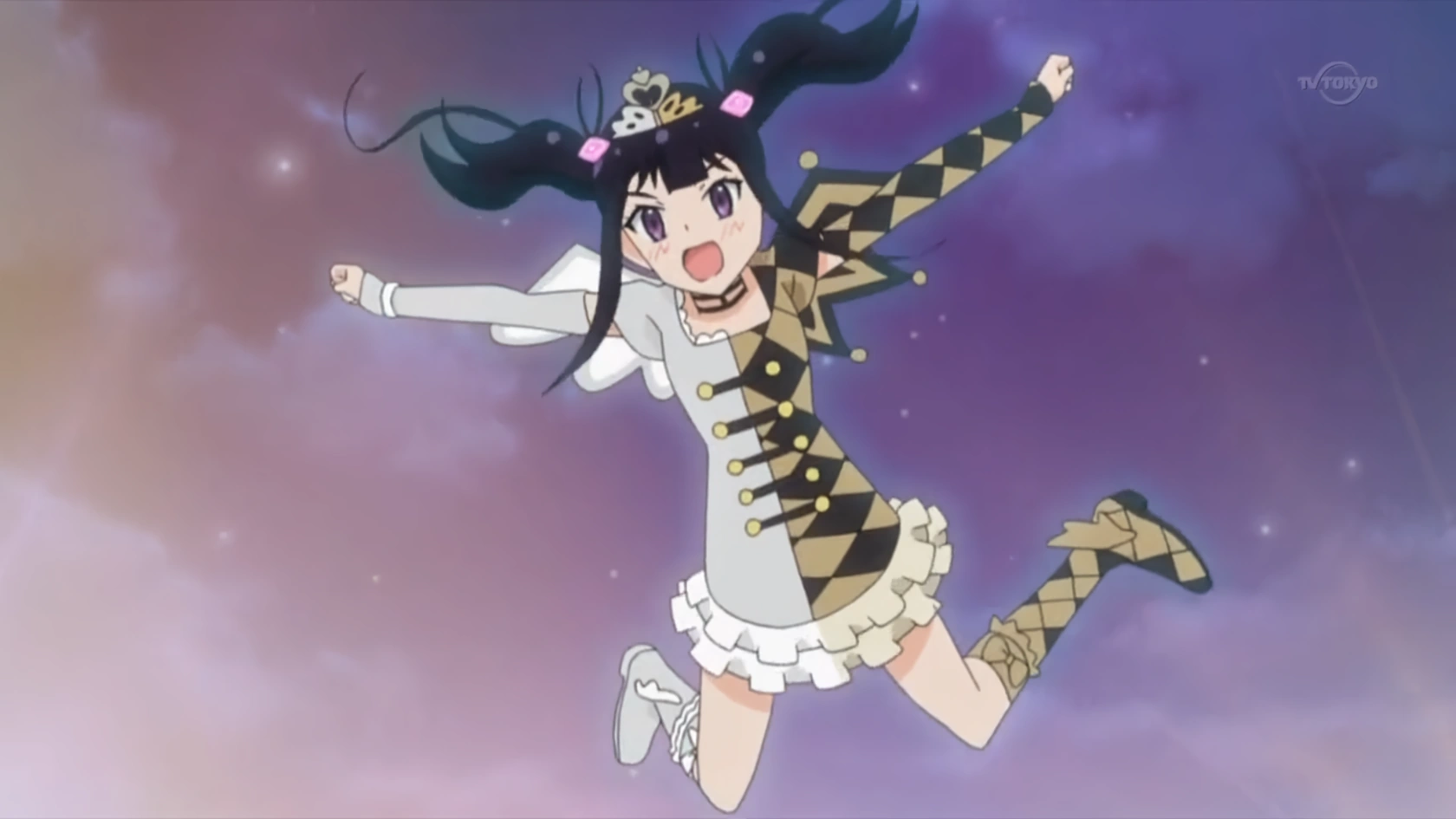 Kaname wears this outfit when she performs with Serena and Kanon in Dear My Future. In the anime, the diamond tile pattern is made slightly bigger, the choker is altered, the straps on the torso are darker, and the ruffles of the skirt are much lighter.