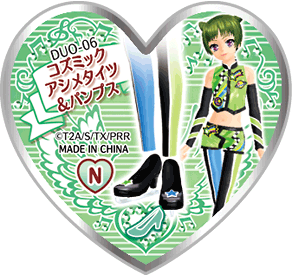 Cosmic Asymmetric Tights & Pumps (コズミックアシメタイツ&パンプス) is a ethnic-type Prism Stone. It was worn by Wakana Morizono in Pretty Rhythm Rainbow Live.