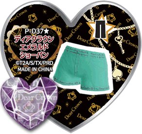Dear Crown Emerald Show Pants (ディアクラウンエメラルドショーパン) is a cool-type Prism Stone. This stone is a collab from the brand Dear Crown and has not appeared in the anime. It resemble the Dear Crown Collar Loose Short Pants.