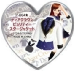 Dear Crown PURETTY Star Jacket (ディアクラウンピュリティースタージャケット) is a star-type Prism Stone. It was worn by Chae kyoung in Pretty Rhythm Dear My Future. This stone is a collab from the brand Dear Crown. It resembles the Dear Crown PURETTY Rouge Jacket, Dear Crown PURETTY One Piece, Dear Crown PURETTY Zebra & Jacket, Dear Crown PURETTY Line & Jacket and the Romanesque Brightness Jacket.