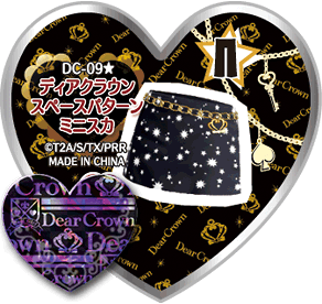 Dear Crown Space Pattern Miniskirt (ディアクラウンスペースパターンミニスカ) is a cool-type Prism Stone. It was worn by Rinne in Pretty Rhythm Rainbow Live. This stone is a collab from the brand Dear Crown.
