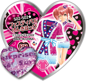Festival Cheerful Happy (フェスティバルげんきはっぴ) is a surprise Prism Stone. It was worn by Naru Ayase, Ann Fukuhara, Ito Suzuno and Rinne in Pretty Rhythm Rainbow Live. It resembles the Festival Summer Happy.