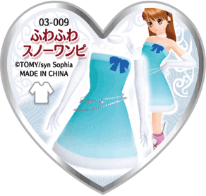 Fluffy Snow One Piece (ふわふわスノーワンピ) is a star-type Prism Stone. It was worn by Mion Takamine in Pretty Rhythm Aurora Dream. It resembles the Fluffy Frozen One Piece.