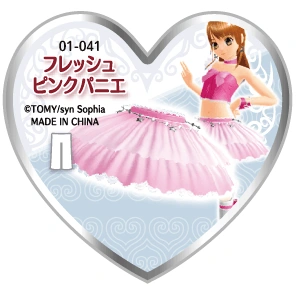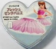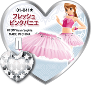 Fresh Pink Pannier (フレッシュピンクパニエ) is a star-type Prism Stone. It was worn by Aira Harune. It resembles the Fresh White Pannier.