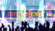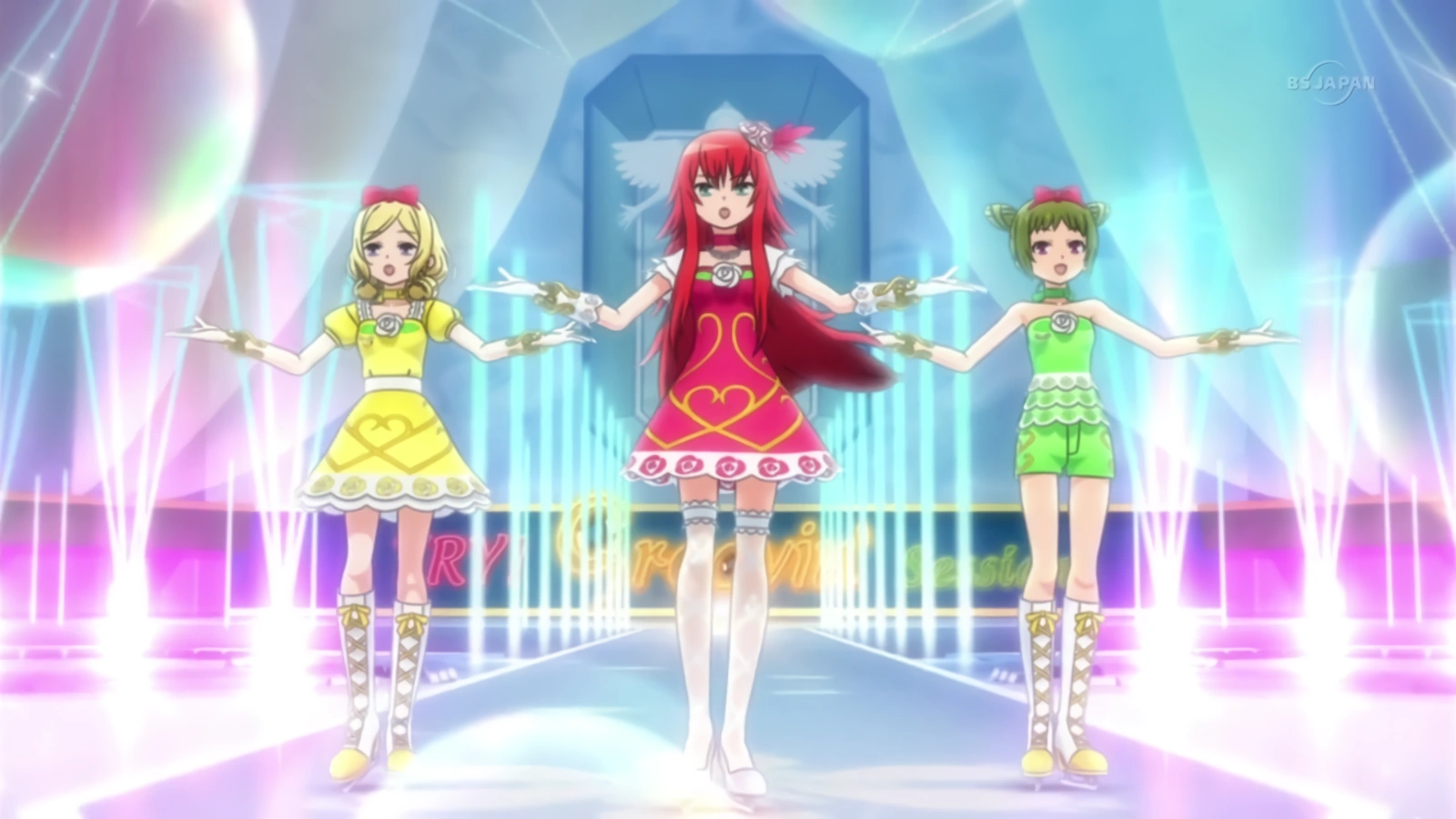 Otoha and Wakana wore the Innocent Miracle Boots as part of their outfit for the unit Bell Rose in Pretty Rhythm Rainbow Live.