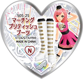 Matching British Boots (マーチングブリティッシュブーツ) is a star-type Prism Stone. It was worn by Happy Rain♪ members in Pretty Rhythm Rainbow Live.