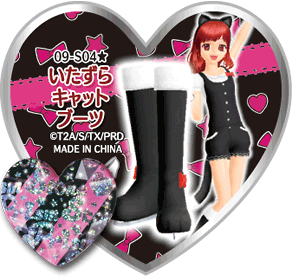 Mischief Cat Boots (いたずらキャットブーツ) is a surprise-type Prism Stone. It was worn by Prizmmy☆ in Pretty Rhythm Dear My Future.