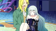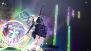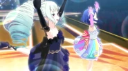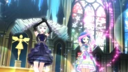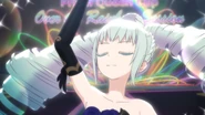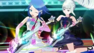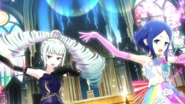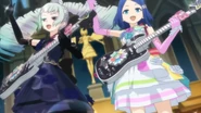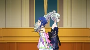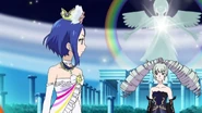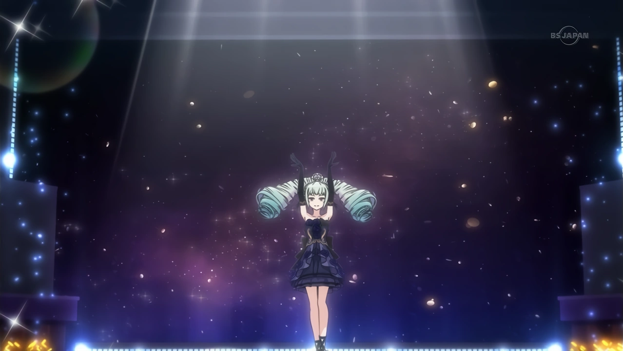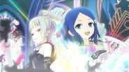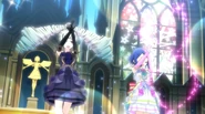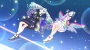 Night Dream Dress (ナイトドリームドレス) is a star-type Prism Stone. It was worn by June Amou in Pretty Rhythm Rainbow Live. It resembles the Miracle Fancy Rainbow Dress.