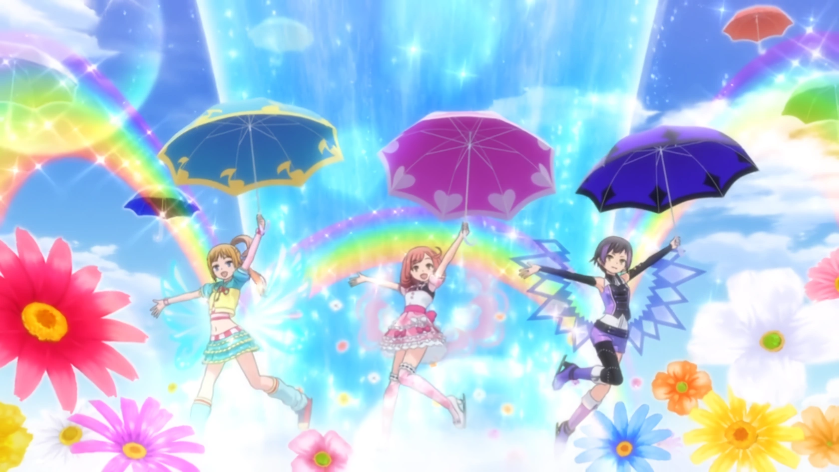 - When performing Lovely Rainbow, Ayami got umbrellas of grey, white, and pale pink instead of rainbow. Additionally, when Kanon performs the jump, she receives Japanese-style parasols instead of normal umbrellas.