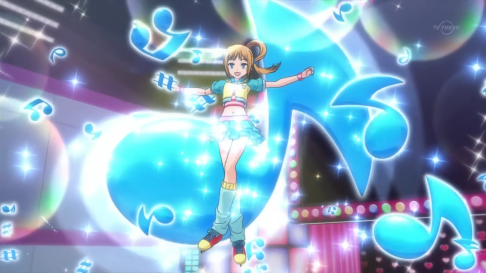 - Glittering Turntable (キラキラターンテーブル Kirakira Tāntēburu) is performed by Otoha Takanashi in episode 46.