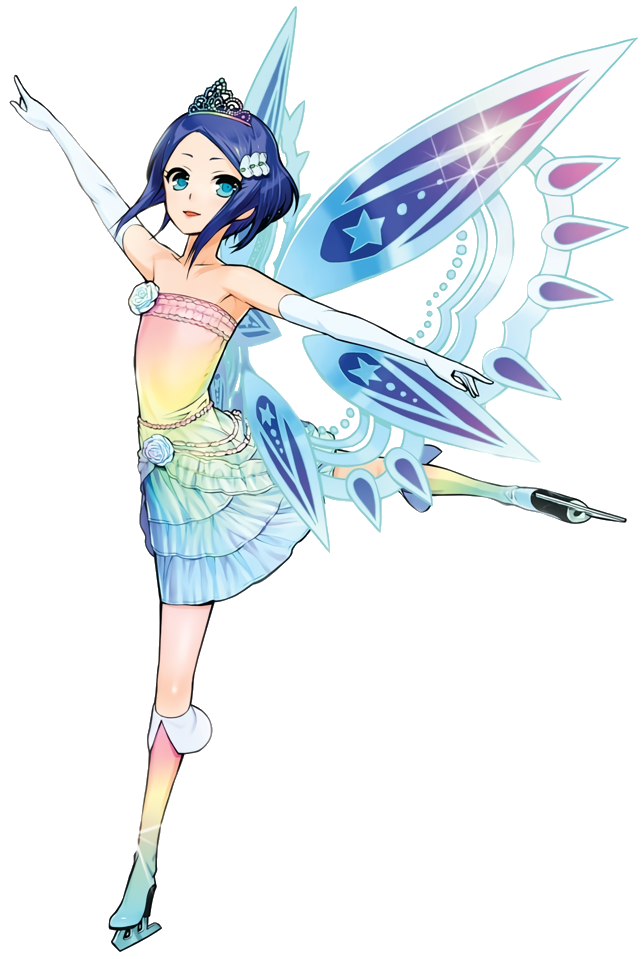 Rinne's height shows that she appears to be around 14-15 years old. She has short and wavy dark blue hair with a slightly longer fringe, and it's usually clipped back with a green clip attached with three silver hearts. Her eyes are round and blue. Rinne is cute, quiet yet funny. In most of her Prism Shows, she wears the Rainbow Wedding dress, a slightly altered version of the Pure White Wedding in Aurora Dream, along with the Rainbow Tiara and the Miracle Rainbow Boots. She wears an expressionless face for most of the time due to her amnesia, but she starts to smile a bit more throughout the series. Rinne is the reason for the smiles on the faces of many characters in Rainbow Live when they were upset.
