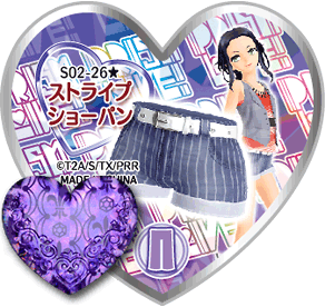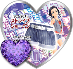 Stripe Show Pants (ストライプショーンツ) is a cool-type Prism Stone. It was worn by Ito Suzuno in Pretty Rhythm Rainbow Live. It resembles the Stripe Short Pants.