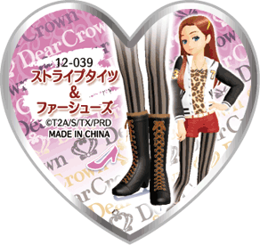 Stripe Tights & Fur Shoes (ストライプタイツ&ファーシューズ) is a sexy-type Prism Stone. It was worn by Chae kyoung in Pretty Rhythm Dear My Future. This stone is a collab from the brand Dear Crown.