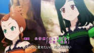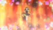 A black mini-dress with lace fabric covering the chest. Around the top of the chest and navel is a dark green frilly band with black line detail. On the side of the chest is a matching butterfly, and around the neck is a lace strap. The light green ruffled skirt has a black scalloped, angle cut layer over it with dark green lining. Dark green puffy sleeves worn beneath the shoulder lined by black frills are included, along with sheer elbow gloves.